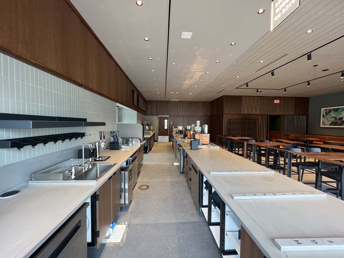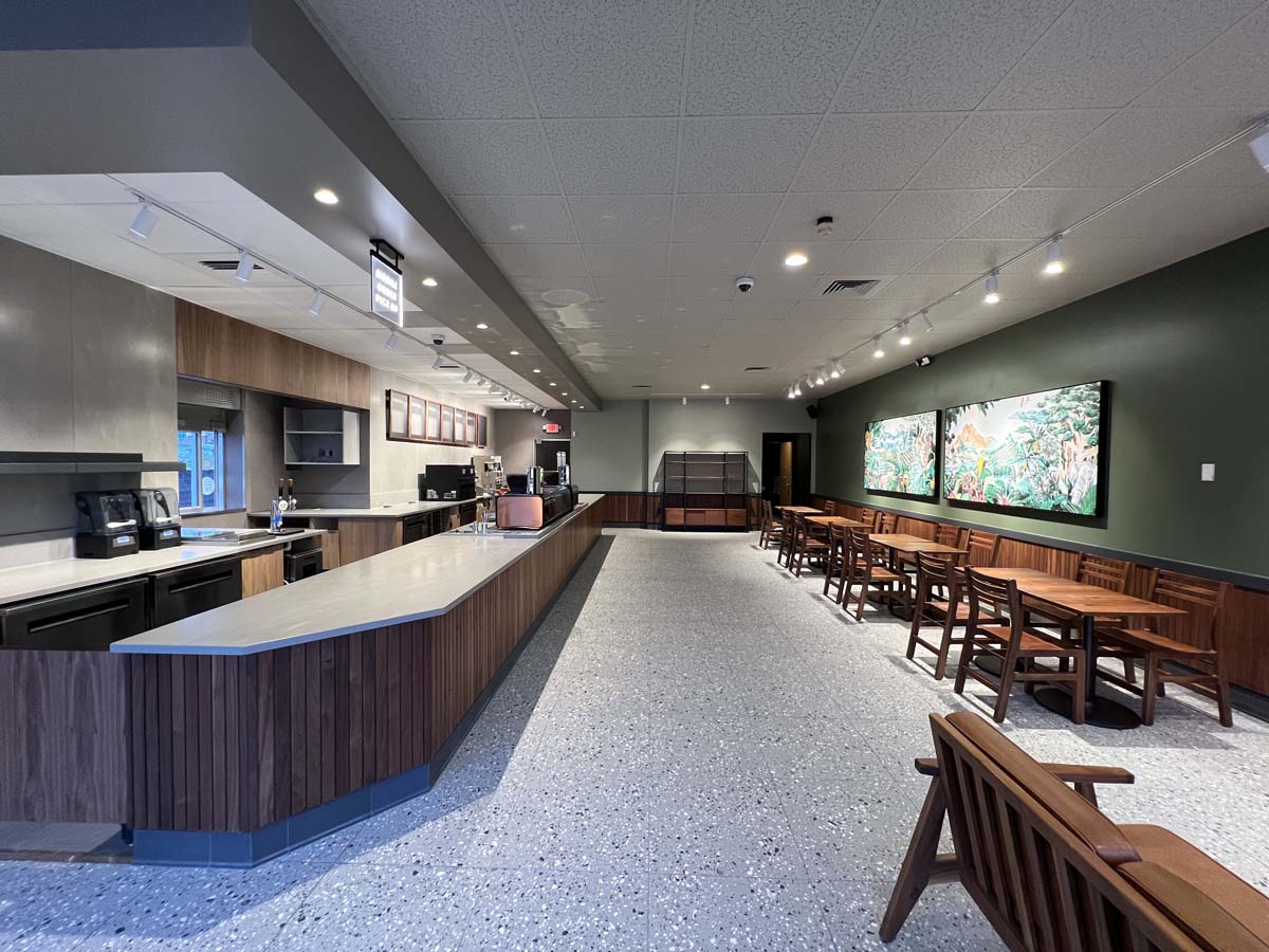 New floor tile, ACT ceilings, paint, check out counter, coffee and Polar Pop Soda cabinetry (along with all new equipment!) and the outside received some paint upgrades!
